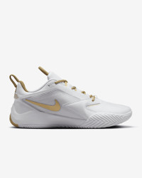 Made for the all-out hustlers who refuse to give up on any play, the HyperAce 3 has you ready for your match. Its sleek, quick design is perfect for instant-reaction plays, cat-quick digs and scurrying into position for a bump. A new outsole and Air Zoom cushioning blend with an agile, lightweight build to help you lunge and last all-match long. More Benefits - An internal webbing system helps secure your foot into the shoe once you lace up. - The collar is plush and supportive to help keep your ankle and heel from rolling. Product Details - Shown: White/Photon Dust/Metallic Gold - Style: FQ7074-105
