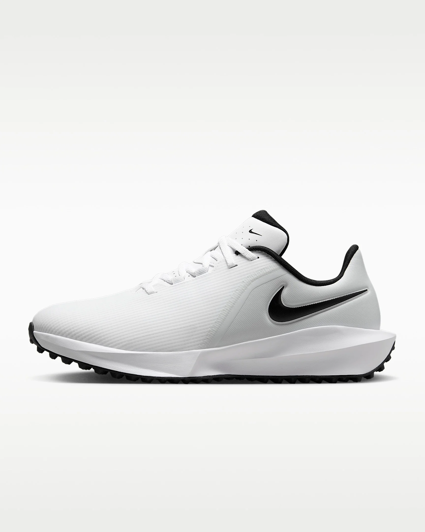 Give your on-course athleticism the full green light in the Infinity G NN. These shoes are perfect for today’s game: sleek and fast. Its running-shoe inspired build can help you uncoil your backswing or uncork a chip from the rough to green. Plus, a revamped outsole pattern is ideal for wet weather. Benefits - Water-repellent finish helps keep you dry in wet weather. - Waffle-inspired pattern on the outsole has wet rubber traction, offering great grip in rough conditions and rainy weather. - Lightweight foam in the midsole offers stable, responsive comfort. Product Details - Shown: White/Pure Platinum/Black - Style: FN0555-100 SIZE & FIT Fits small; we recommend ordering a half size up