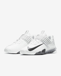 The Nike Savaleos straps your foot down to a flat, wide base to keep you feeling stable and secure when you're up against serious weight. The rigid midsole has a lift at the heel for peak power transfer from the ground to help support your most explosive sets. More Benefits - Padded mesh inset at the heel absorbs impact while letting your foot breathe. Product Details - Padded tongue and collar - Pull tab on tongue - Shown: White/Iron Grey/Laser Orange/Black - Style: CV5708-100 SIZE & FIT Fits small; we recommend ordering a half size up