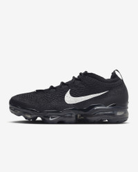 Breathe in. Breath out. This Air is better than that. With the first 1-piece Air unit to run the entire length of a shoe, the Air VaporMax 2023 Flyknit lets you walk on unbelievable cushioning. And up top, stretchy and supportive Flyknit keeps it breezy and light. Bonus—it's made with at least 20% recycled materials by weight. Now that's fresh! Benefits - As the first 1-piece Air unit to run the entire length of a shoe, it allows for smoother transitions and adds unbelievable cushioning. - Flyknit upper uses stretchy yarns for a breathable and supportive fit that feels as light as air. - Seamless collar sculpts the ankle for a sporty look that feels great, while padding on heel adds to the comfort. - Translucent rubber outsole adds durability and traction. Product Details - Traditional lacing - Shown: Black/Anthracite/Sail - Style: DV6840-002 SIZE & FIT Fits small; we recommend ordering a half size up