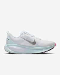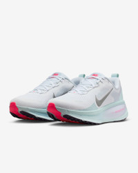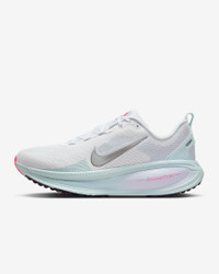 Maximum cushioning in the Vomero provides a comfortable ride for everyday runs. Our softest, most cushioned ride has lightweight ZoomX foam stacked on top of responsive ReactX foam in the midsole. A redesigned traction pattern underfoot offers a smooth heel-to-toe transition. More Benefits - ZoomX foam stacked on top of ReactX foam - Higher stack height compared to Vomero 17 - Plush foam collar - Increased rocker Product Details - Weight: Approx. 262 g/9.2 oz (Women’s US 8) - Heel-to-toe drop: 10 mm - Reflective details - Not intended for use as Personal Protective Equipment (PPE) - Shown: White/Glacier Blue/Palest Purple/Metallic Silver - Style: IO7438-100