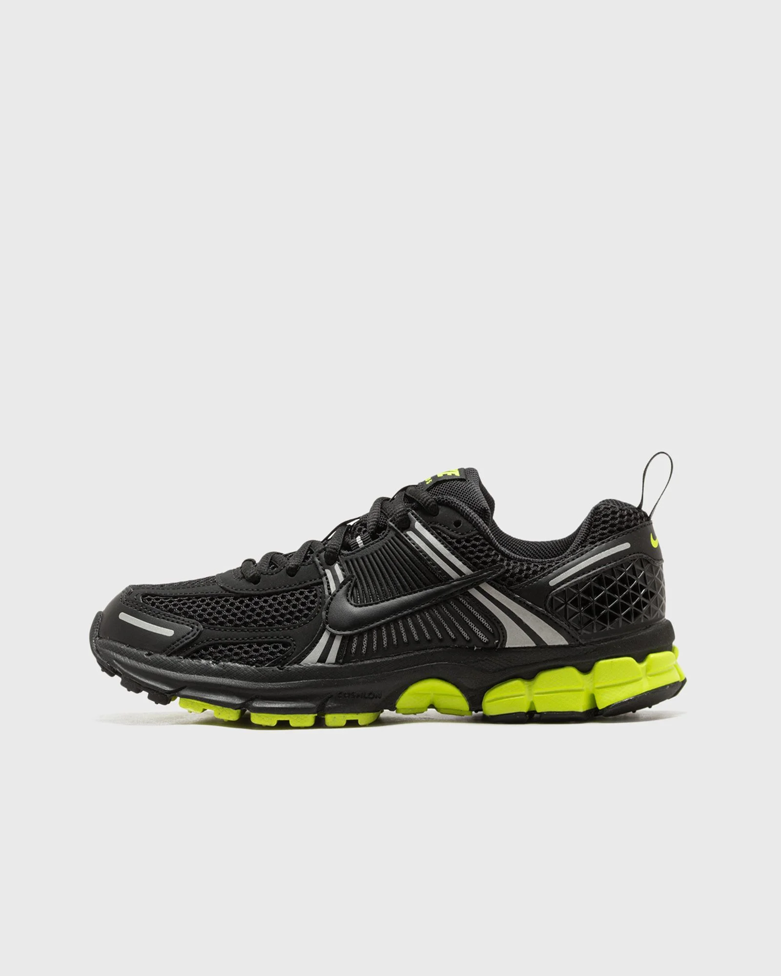 With the Nike Zoom Vomero 5 and its combination of functional running technology and stylish on-trend silhouette, you'll be breaking new ground. The sneaker impresses with a multi-layered design that combines textiles, synthetic leather and plastic details to create one of the coolest sneakers of the season. - Synthetic leather upper provides durability and structure - Mesh inserts and ventilation openings on the heel ensure a light, breathable feel - Zoom Air cushioning offers a fast, responsive feel - Plastic cage on the side provides support - Rubber outsole provides excellent traction Article number: HF6998-009 Gender: men,women,kids Color: BLACK/VOLT-BLACK-BLACK Material: 100% Synthetic/Textile