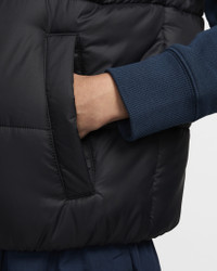 Take on the winter chill in a vest designed to add some warmth to your life. Loose enough to layer, its synthetic fill adds insulation while Nike Therma-FIT technology helps manage your body’s natural heat to help keep you warm in cold-weather conditions. On top of that, a water-repellent finish helps keep you dry. So zip it up, throw your hands in the pockets and get out there! More Benefits - Style: Hip-length, loose-fit vest - Materials: Water-repellent fabric - Construction: Synthetic insulation - Storage: Snap-closure hand pockets - Trim: Zipper closure and elastic hem Product Details - 100% polyester - Embroidered Swoosh logo - Machine wash - Imported - Shown: Black/White - Style: FZ5922-010 SIZE & FIT Model is wearing size S and is 5′10″178cm Loose fit: roomy and relaxed