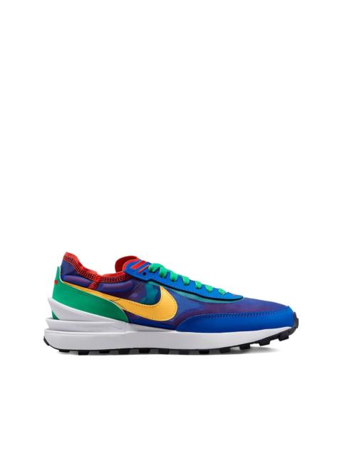 Waffle One "Summit White/Light Bone/Green" sneakers Inspired by the OG Nike Waffle sneaker designed by Bill Bowerman in 1976, these Waffle One sneakers were constructed from light grey suede panels, transparent mesh upper and detailed with the usual Swoosh logo on the sides Imported Composition Suede 100% SIZE & FIT Measurement HEEL 1.57 in(4 cm) Sole height 0.78 in(2 cm)