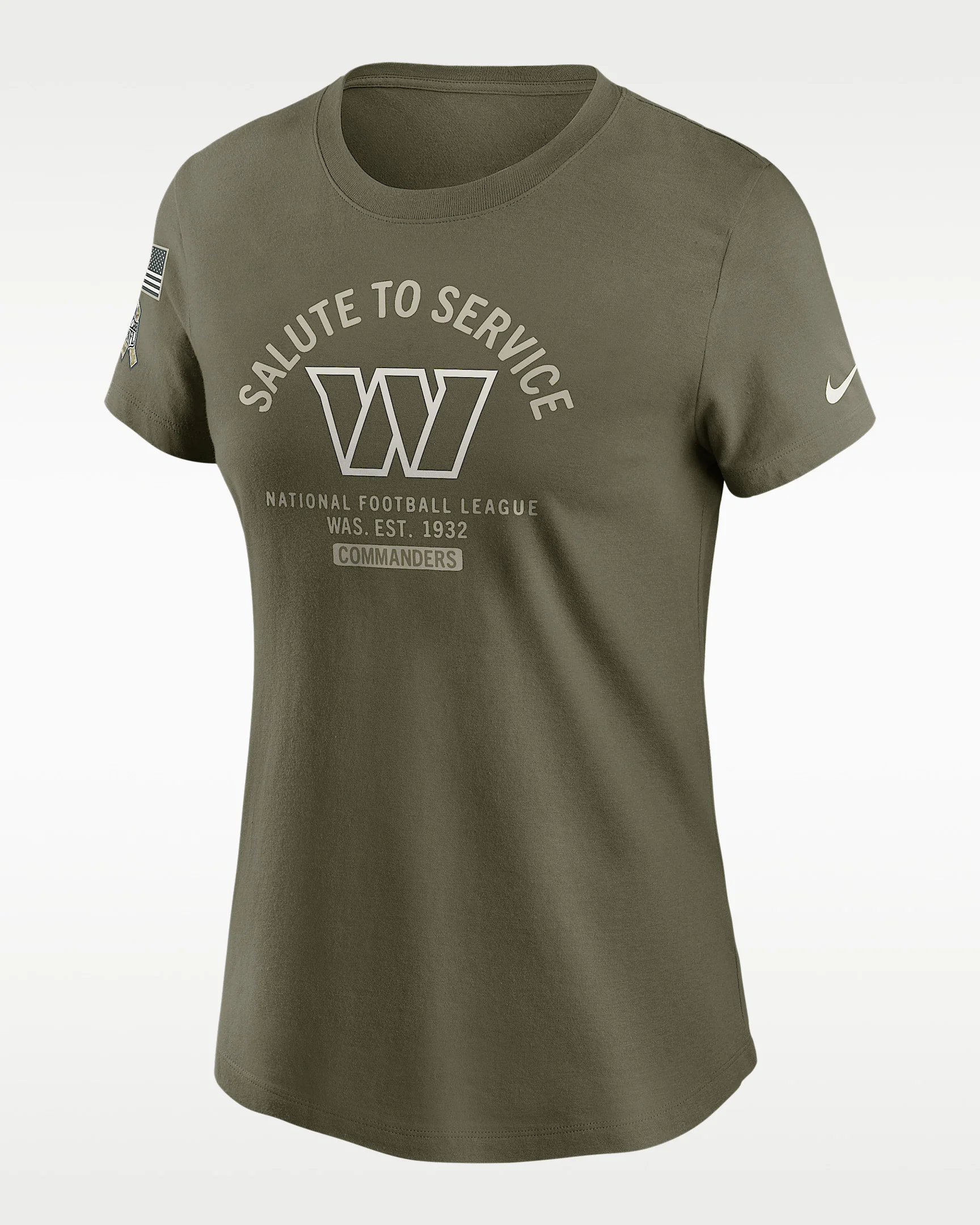 Made from soft cotton fabric for continuous comfort, this Washington Commanders Salute to Service Sideline T-Shirt helps you represent the NFL's charitable initiative with a special design. Product Details - 100% cotton - Machine wash - Imported - Shown: Olive - Style: NKAF2DHA2Z-PH3