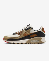 Nothing as fly, nothing as comfortable, nothing as proven—the Nike Air Max 90 stays true to its roots with the iconic Waffle sole, stitched overlays and classic TPU accents. Fresh details give a modern look while Max Air cushioning adds comfort to your journey. Benefits - Originally designed for performance running, the Max Air unit in the heel adds unbelievable cushioning. - Padded, low-top collar looks sleek and feels great - Rubber Waffle outsole adds a heritage look, traction and durability. - Stitched overlays and TPU accents on the heel and eyestays add durability, comfort and the iconic '90s look you love. Product Details - Shown: Phantom/Black/Fire Red/Light British Tan - Style: DH8010-005 SIZE & FIT Fits small; we recommend ordering a half size up