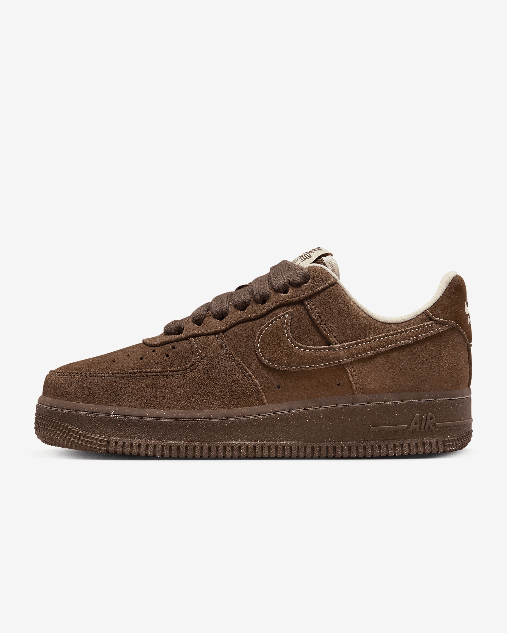 The radiance lives on in the Nike Air Force 1 '07. This hoops original puts a fresh spin on everything you know best about the AF1, including classic leather, durable construction and bold details. Clean, classic and always in style, these kicks have the perfect amount of flash to make you shine. Benefits - From tough stitching to pristine materials to cupsole design, these kicks deliver durable style that's smoother than backboard glass. - Originally designed for performance hoops, Nike Air cushioning delivers lasting comfort. - Low-cut, padded collar looks sleek and feels comfortable. - Rubber outsole with heritage hoops pivot circles adds traction and durability. Product Details - Foam in the midsole - Perforation on toe - Shown: Cacao Wow/Sanddrift/Cacao Wow - Style: FQ8901-259