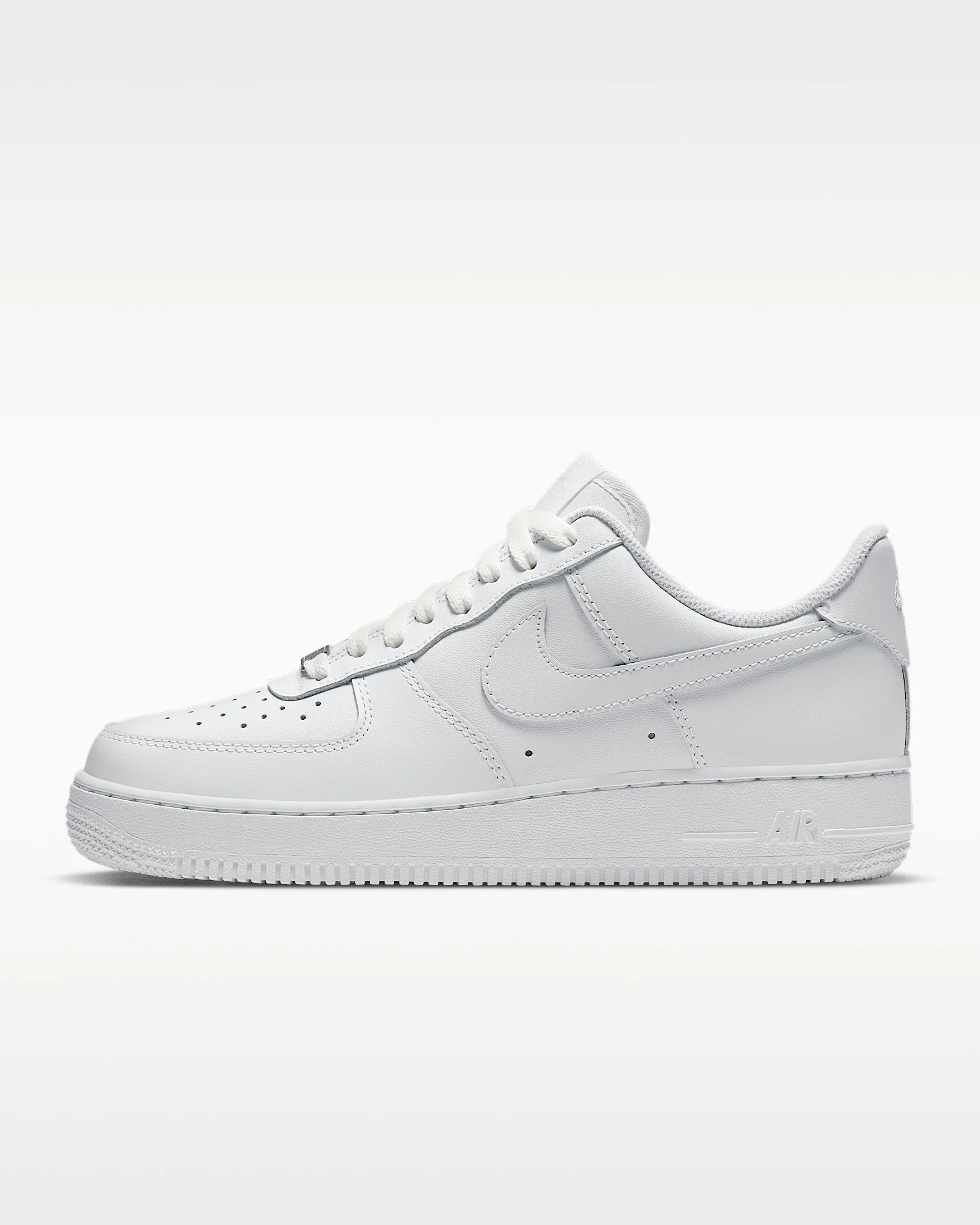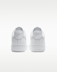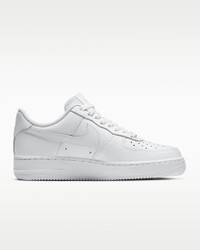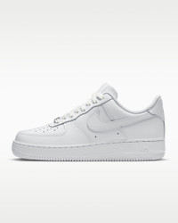 The radiance lives on in the Nike Air Force 1 ’07, the b-ball icon that puts a fresh spin on what you know best: crisp leather, bold colors and the perfect amount of flash to make you shine. A subtle platform gives you just the right amount of height. Benefits - Smooth leather with stitched overlays ages to soft perfection. - Originally designed for hoops, Nike Air cushioning adds lightweight, all-day comfort. - Padded, low-cut collar looks sleek and feels great. Product Details - Foam midsole - Rubber outsole - Perforations on the toe - Shown: White/White/White/White - Style: DD8959-100 SIZE & FIT Fits large; we recommend ordering a half size down