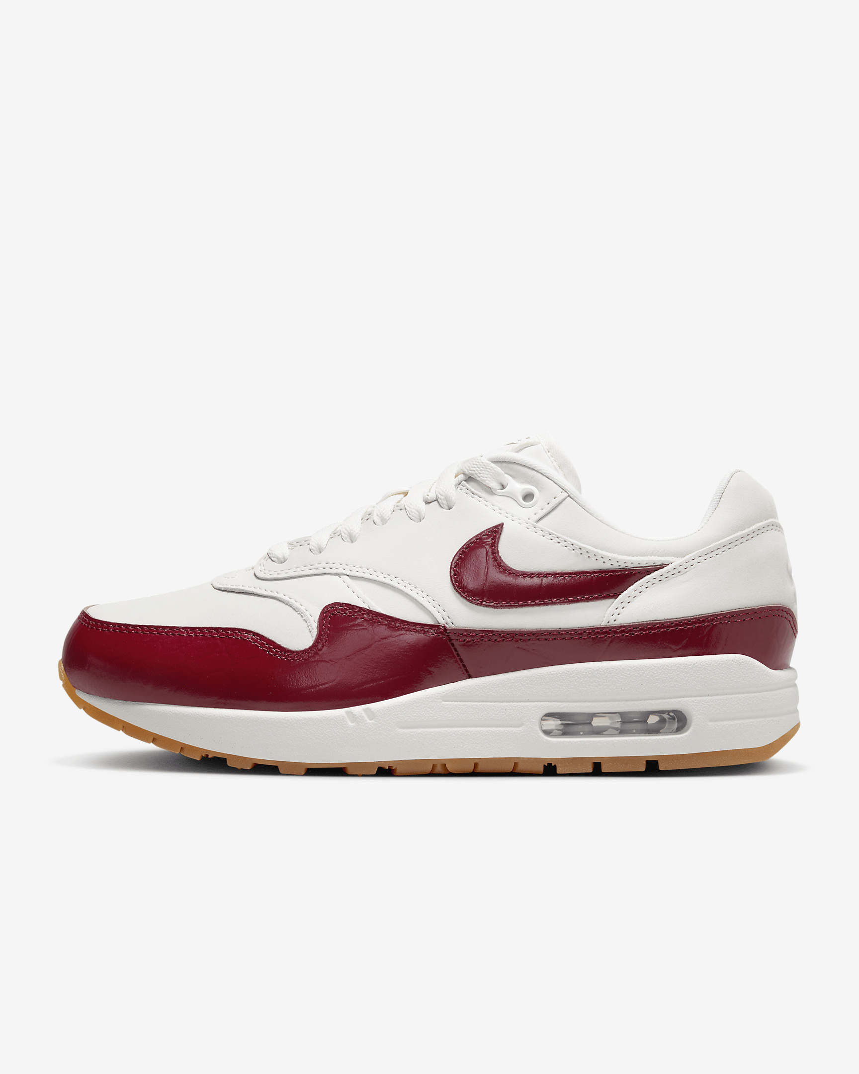 Meet the leader of the pack—the first shoe in the family to reveal Nike Air to the world. With a fast-paced look, tried-and-true cushioning and classic wavy mudguard, it’s no wonder the Air Max 1 has reigned supreme since 1987. Benefits - Foam midsole and a Max Air unit in the heel provides lightweight cushioning. - Rubber Waffle outsole adds durable traction and heritage style. - Padded, low-cut collar feels soft and comfortable. Product Details - Shown: Sail/Sail/Gum Light Brown/Team Red - Style: FJ3169-100