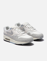 - Nike - Nike Air Max 1 Safari - Leather upper - Lace-up closure - Safari print Swoosh and mudguard - Air cushioning - Rubber outsole - Color: Summit White/Sail/Photon Dust - Material: Leather, Rubber - See more Sneakers and Shoes SIZING Size and cutting will vary between brands, please use the chart as a general guide.