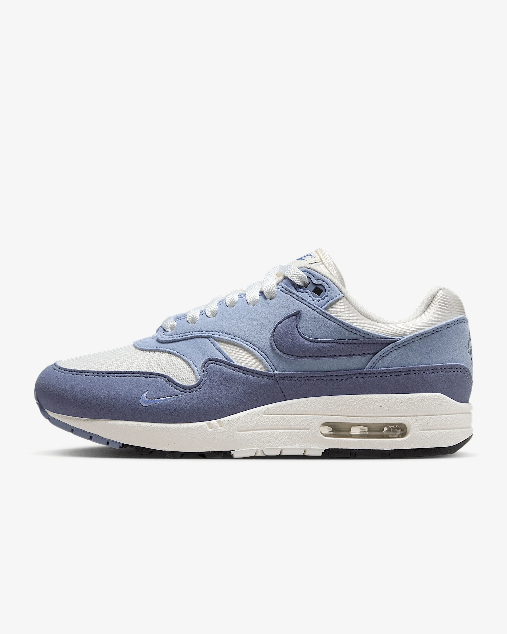 The first shoe to use Max Air technology is still displaying the decades of innovation that make it as classic as it is comfortable. The proof? You're looking through it. Textile materials take this Air Max 1 to the next chapter. Benefits - Textile upper creates a layered look built to last. - Max Air unit in the heel provides lightweight cushioning. - Rubber Waffle outsole gives you durable traction and heritage style. Product Details - Padded collar - Foam midsole - Shown: Sail/Light Armory Blue/Black/Ashen Slate - Style: HF1194-102