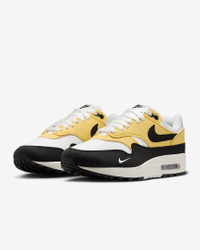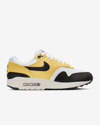 The first shoe to use Max Air technology is still displaying the decades of innovation that make it as classic as it is comfortable. The proof? You're looking through it. Textile materials take this Air Max 1 to the next chapter. Benefits - Textile upper creates a layered look built to last. - Max Air unit in the heel provides lightweight cushioning. - Rubber Waffle outsole gives you durable traction and heritage style. Product Details - Padded collar - Foam midsole - Shown: Saturn Gold/Summit White/Sail/Black - Style: HF1194-700