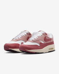 Meet the leader of the pack. Walking on clouds above the noise, the Air Max 1 blends timeless design with cushioned comfort. Sporting a fast-paced look, wavy mudguard and Nike Air, this classic icon hit the scene in ‘87 and continues to be the soul of the franchise today. Benefits - Mixed materials add durability that's made for everyday wear and city life. - Originally designed for performance running, the visible Max Air unit provides all-day cushioning. - Padded, low-cut collar looks sleek and feels comfortable. - Wavy mudguard and pill-shaped Nike Air window keep the classic look you love. - Rubber outsole gives you durable traction. Product Details - Shown: Sail/Red Stardust/Coconut Milk/Cedar - Style: DZ2628-103