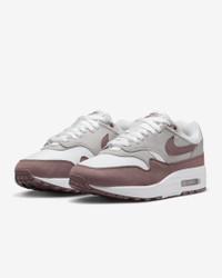 Meet the leader of the pack. Walking on clouds above the noise, the Air Max 1 blends timeless design with cushioned comfort. Sporting a fast-paced look, wavy mudguard and Nike Air, this classic icon hit the scene in ‘87 and continues to be the soul of the franchise today. Benefits - Mixed materials add durability that's made for everyday wear and city life. - Originally designed for performance running, the visible Max Air unit provides all-day cushioning. - Padded, low-cut collar looks sleek and feels comfortable. - Wavy mudguard and pill-shaped Nike Air window keep the classic look you love. - Rubber outsole gives you durable traction. Product Details - Shown: Summit White/Light Iron Ore/Smokey Mauve - Style: DZ2628-104