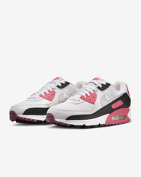 Nothing as fly, nothing as comfortable, nothing as proven—the Nike Air Max 90 stays true to its roots with the iconic Waffle sole, stitched overlays and classic TPU accents. Fresh details give a modern look while Max Air cushioning adds comfort to your journey. Benefits - Originally designed for performance running, the Max Air unit in the heel adds unbelievable cushioning. - Padded, low-top collar looks sleek and feels great - Rubber Waffle outsole adds a heritage look, traction and durability. - Stitched overlays and TPU accents on the heel and eyestays add durability, comfort and the iconic '90s look you love. Product Details - Shown: White/Aster Pink/Black/Light Silver - Style: DH8010-105 SIZE & FIT Fits small; we recommend ordering a half size up