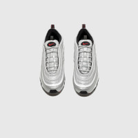 - DQ9131 002 - Metallic Silver/VarsityRed-White-Black - One of the most beloved models in the legendary "AIR MAX" line done its original and most popular colorway - Metallic silver leather upper with metallic silver mesh & 3M panels - Metallic silver mesh tongue with black nubuck swoosh emblem and metallic silver 3M lace cover - University red embroidered "SWOOSH" on the side panel - Black ribbon pull tab on the heel with "AIR MAX '97" branding - White foam midsole with full length "AIR" unit - Black rubber outsole