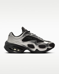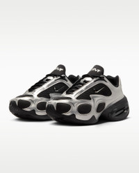 The Air Max Muse is a bold, futuristic addition to the Air Max family. Its exaggerated proportions, sleek finishes and unexpectedly high arch showcase the shoe’s namesake Air technology. Get ready. A new era of expression is here. Benefits - Upper combines synthetic leather and textiles for a durable, layered look. - Strategically placed mesh adds breathability. - Plush and comfortable, Max Air cushioning has just the right amount of support. - New Air Max logo is featured on the tongue. Product Details - Metallic accents - Foam midsole - Rubber outsole - Shown: Black/Metallic Silver - Style: FV1920-001