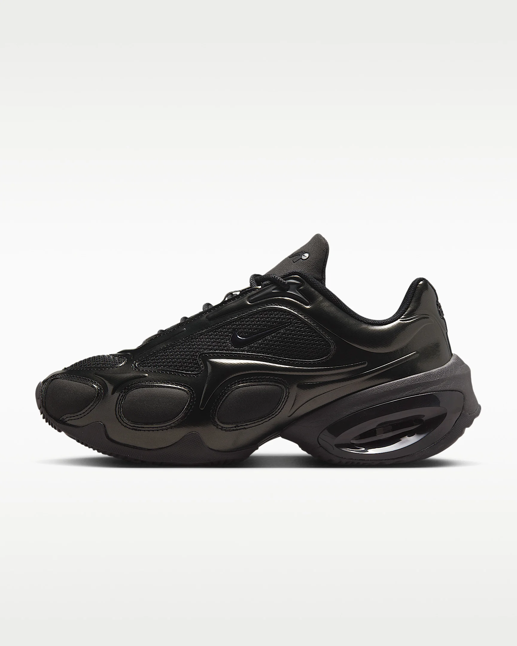 The Air Max Muse is a bold, futuristic addition to the Air Max family. Its exaggerated proportions, sleek finishes and unexpectedly high arch showcase the shoe’s namesake Air technology. Get ready. A new era of expression is here. Benefits - Upper combines synthetic leather and textiles for a durable, layered look. - Strategically placed mesh adds breathability. - Plush and comfortable, Max Air cushioning has just the right amount of support. - New Air Max logo is featured on the tongue. Product Details - Metallic accents - Foam midsole - Rubber outsole - Shown: Black/Metallic Silver/Black - Style: FV1920-003
