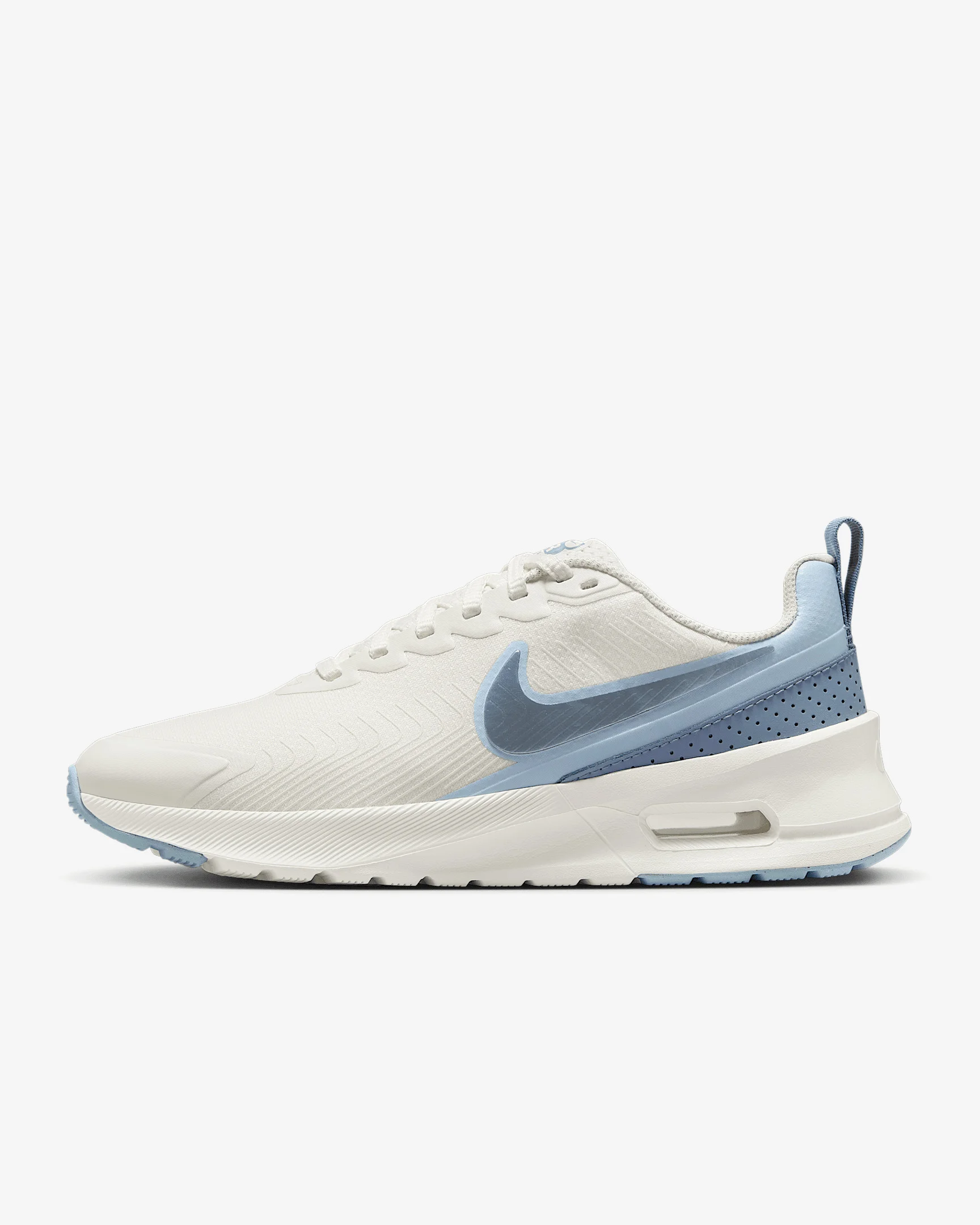 The Air Max Nuaxis is ready for everyday life. You can count on it to look good and feel good too, thanks to breathable mesh and an intuitive Air unit. With design elements inspired by the Air Max 270, the sleek shape makes it the perfect shoe to lace up and go. Benefits - Mesh upper helps keep you cool when life gets busy. - Plush and comfortable, Max Air cushioning has just the right amount of support. - Rubber outsole gives you durable traction. Product Details - Shown: Sail/Light Armory Blue/Ashen Slate - Style: HF1233-108