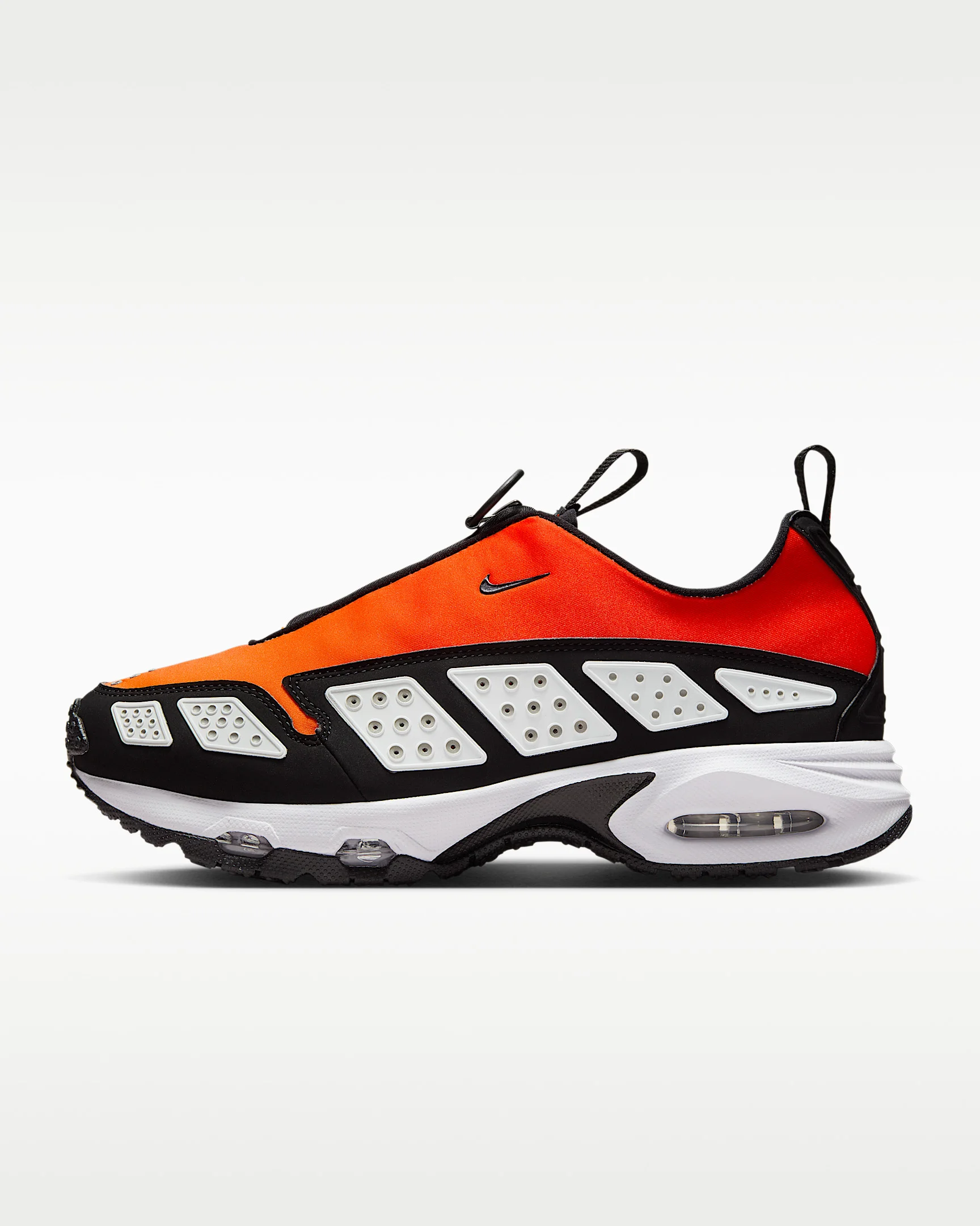 Ahead of its time in '99, the innovative Air Max SNDR is back and louder than ever. From the secure fit around the heel to the zip-up shroud, this legendary sneaker continues to break the mold. Unzip the shroud to reveal "6453," a nod to the last 4 numbers of Nike's office numbers around the world, which spell out N-I-K-E on the keypad. Benefits - Neoprene-like upper feels smooth and stretchy. - Zip-up shroud covers your laces for a sleek look. - Reflective vented panels create a breathable feel. - Max Air cushioning in heel and forefoot add exceptional bounce and comfort. Product Details - Pull tabs - Foam midsole - Rubber outsole - Not intended for use as Personal Protective Equipment (PPE) - Shown: Bright Crimson/Bright Ceramic/White/Black - Style: HJ8080-600