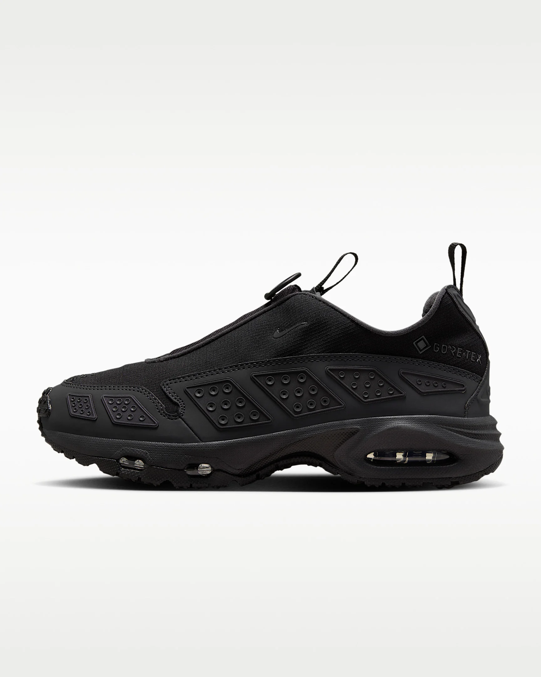 Ahead of its time in '99, the futuristic Air Max SNDR is back and cooler than ever. This edition comes equipped with GORE-TEX to help keep your feet warm and dry, while Max Air cushioning creates exceptional bounce and comfort. Unzip the shroud to reveal "6453," a nod to the last 4 digits of Nike's office numbers around the world, which spell out N-I-K-E on the keypad. Benefits - Waterproof GORE-TEX fabric helps keep your feet dry. - Plush and comfortable, Max Air cushioning has just the right amount of support. Product Details - Reflective panels - Foam midsole - Rubber outsole - Not intended for use as Personal Protective Equipment (PPE) - Shown: Black/Dark Smoke Grey - Style: FZ4238-001 SIZE & FIT Fits small; we recommend ordering a half size up