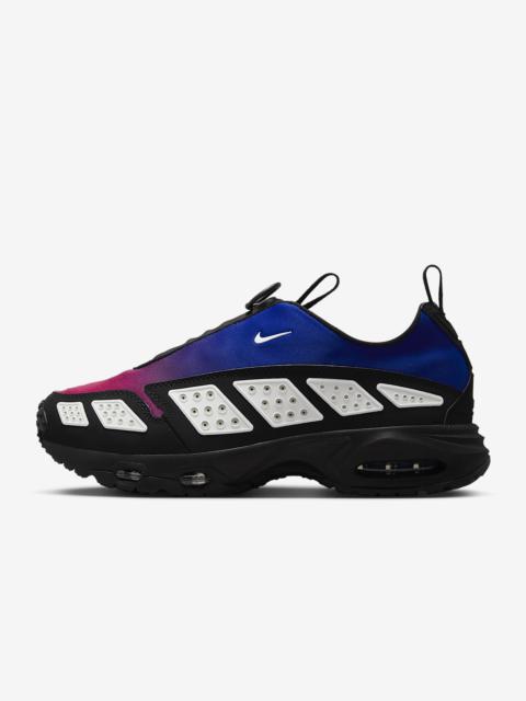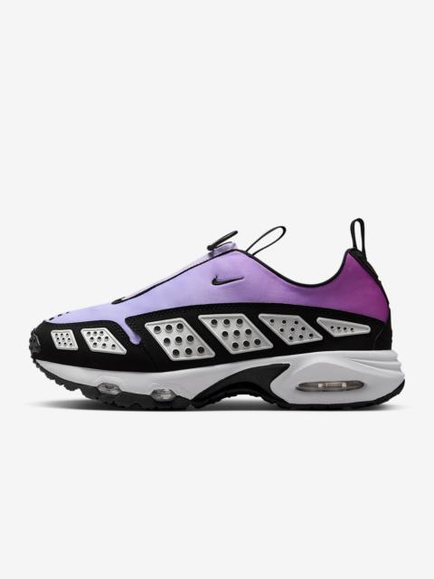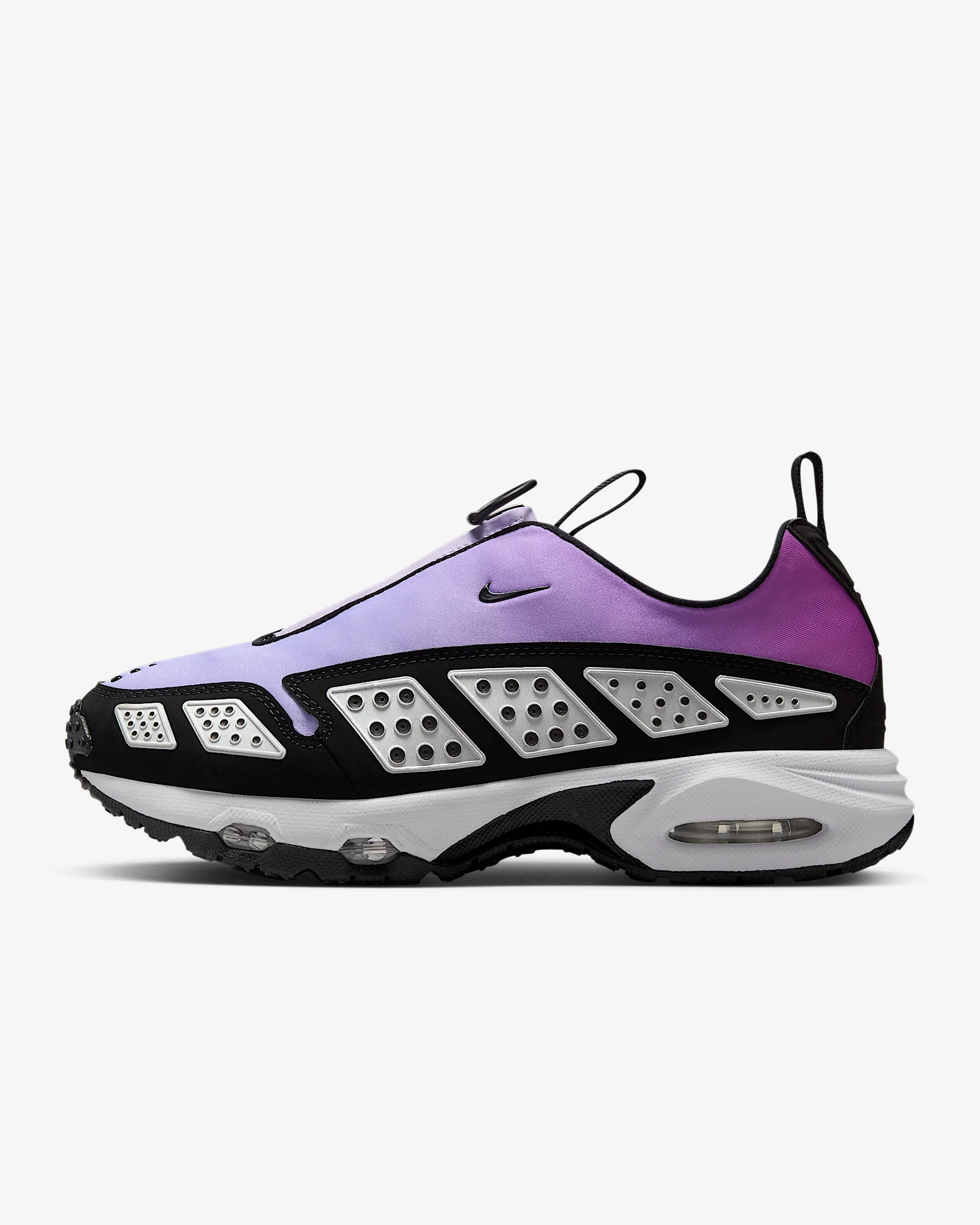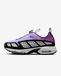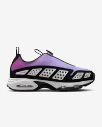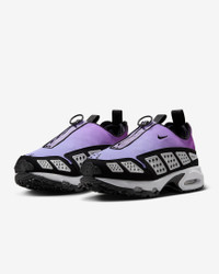 Ahead of its time in '99, the innovative Air Max SNDR is back and louder than ever. From the secure fit around the heel to the zip-up shroud, this legendary sneaker continues to break the mold. Unzip the shroud to reveal "6453," a nod to the last 4 numbers of Nike's office numbers around the world, which spell out N-I-K-E on the keypad. Benefits - Neoprene-like upper feels smooth and stretchy. - Zip-up shroud covers your laces for a sleek look. - Reflective vented panels create a breathable feel. - Max Air cushioning in heel and forefoot add exceptional bounce and comfort. Product Details - Pull tabs - Foam midsole - Rubber outsole - Not intended for use as Personal Protective Equipment (PPE) - Shown: Hyper Violet/White/Hydrangeas/Black - Style: HJ8080-500