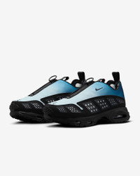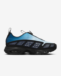 Ahead of its time in '99, the innovative Air Max SNDR is back and louder than ever. From the secure fit around the heel to the zip-up shroud, this legendary sneaker continues to break the mold. Unzip the shroud to reveal "6453," a nod to the last 4 numbers of Nike's office numbers around the world, which spell out N-I-K-E on the keypad. Benefits - Neoprene-like upper feels smooth and stretchy. - Zip-up shroud covers your laces for a sleek look. - Reflective vented panels create a breathable feel. - Max Air cushioning in heel and forefoot add exceptional bounce and comfort. Product Details - Pull tabs - Foam midsole - Rubber outsole - Not intended for use as Personal Protective Equipment (PPE) - Shown: Obsidian/Grey Haze/Black - Style: HJ8080-401