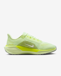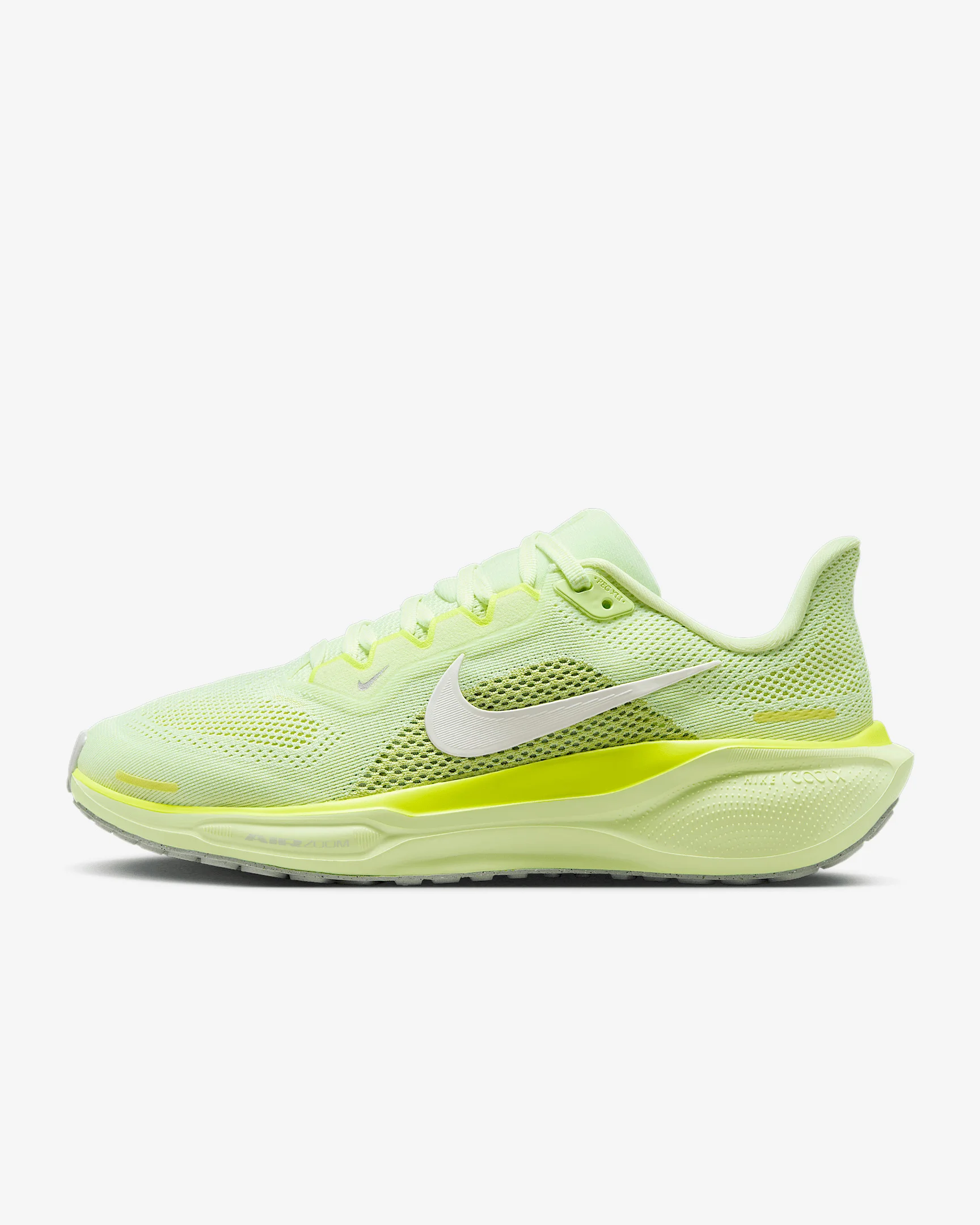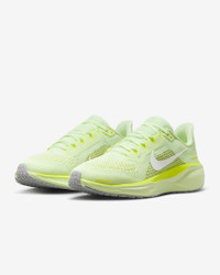 Responsive cushioning in the Pegasus provides an energized ride for everyday road running. Experience lighter-weight energy return with dual Air Zoom units and a ReactX foam midsole. Plus, improved engineered mesh on the upper decreases weight and increases breathability. Benefits - Upgraded breathable engineered mesh upper - ReactX foam midsole surrounds forefoot and heel Air Zoom units for an energized ride. - Signature waffle-inspired rubber outsole for traction and flexibility - Plush collar tongue and sockliner for a secure and comfortable fit - What's new? All-new ReactX foam midsole is 13% more responsive than previous React technology. - Crafted for performance and planet, ReactX foam is engineered to reduce its carbon footprint by at least 43% in a pair of midsoles due to reduced manufacturing process energy compared to prior React foam. The carbon footprint of ReactX is based on cradle-to-gate assessment reviewed by PRe Sustainability B.V and Intertek China. Other midsole components such as airbags, plates or other foam formulations were not considered. Product Details - Weight: Approx. 251 g/8.8 oz (Women's US 8) - Heel-to-toe drop: 10 mm - MR-10 Last - Our best, most consistent fit (same as Pegasus 40) - Not intended for use as Personal Protective Equipment (PPE) - Shown: Barely Volt/Limelight/Light Silver/Sail - Style: FD2723-702