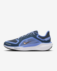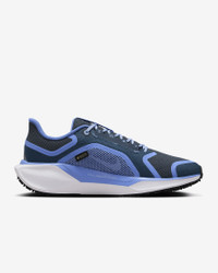 Responsive cushioning in the winterized Pegasus provides an energized ride for wet-weather road running. Experience lighter-weight energy return with dual Air Zoom units and a ReactX foam midsole. Plus, a waterproof GORE-TEX upper and reflective details throughout help you comfortably take on the elements. Benefits - Waterproof GORE-TEX upper and technical mesh help keep water out so your feet dry. - ReactX foam midsole surrounds forefoot and heel Air Zoom units for an energized ride. - Storm-Tread outsole provides traction in wet weather. - Heathered material around the collar helps keep your ankle warm. - What's new? All-new ReactX foam midsole is 13% more responsive than previous React technology. - Crafted for performance and planet, ReactX foam is engineered to reduce its carbon footprint by at least 43% in a pair of midsoles due to reduced manufacturing process energy compared to prior React foam. The carbon footprint of ReactX is based on cradle-to-gate assessment reviewed by PRe Sustainability B.V and Intertek China. Other midsole components such as airbags, plates or other foam formulations were not considered. Product Details - Reflective GORE-TEX logo and Swoosh logo - Reflective graphics and overlays - Not intended for use as Personal Protective Equipment (PPE) - Weight: Approx. 251 g/8.8 oz (Women's US 8) - Heel-to-toe drop: 10 mm - MR-10 Last - Our best, most consistent fit (same as Pegasus 40) - Plush collar, tongue and sockliner - Shown: Cobalt Bliss/Armory Navy/Royal Pulse/Metallic Red Bronze - Style: FQ1357-400