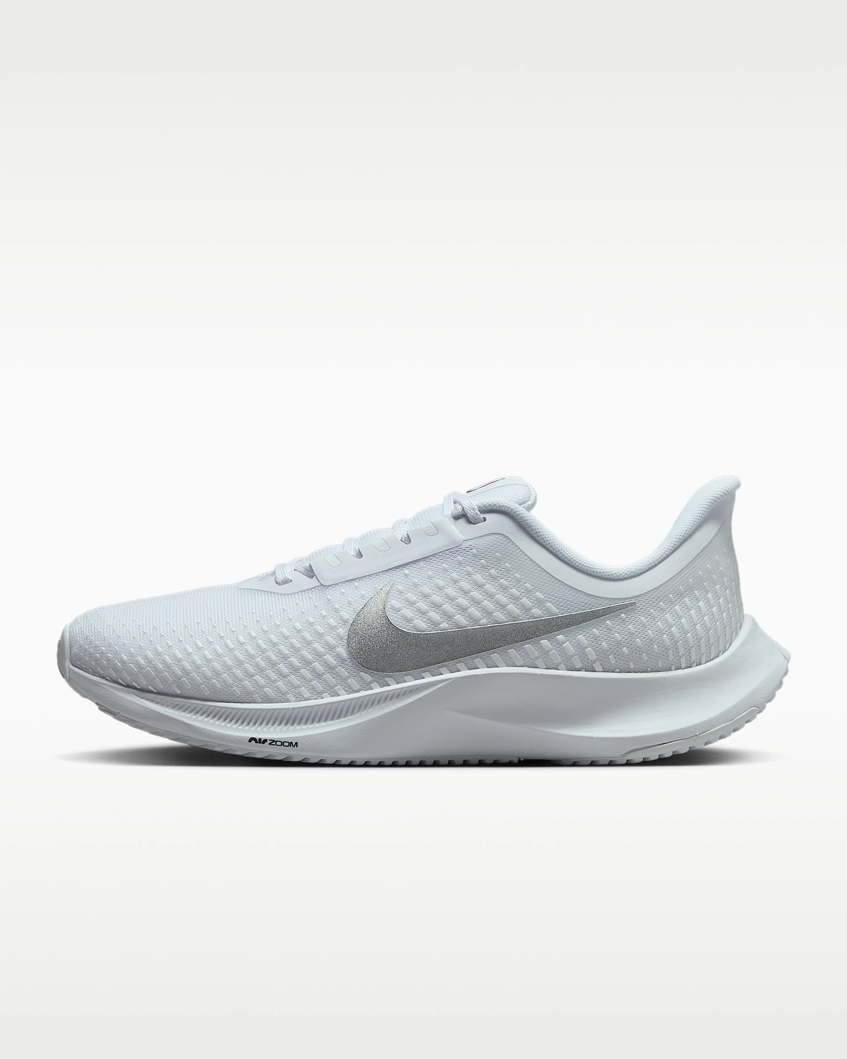 The Nike Power Flight is the solution for everything from stunts to sticks. Air Zoom cushioning underfoot provides responsive comfort for repetitive movements while the lightweight upper helps keep you balanced for your routine. Benefits - Lightweight upper enhances balance and stability while featuring built-in grip for holding where it matters most. - Snappy and responsive, Air Zoom cushioning helps provide a quick-off-the-ground sensation. - Forefoot flexibility complements the low-profile cushioning. Product Details - Cushlon foam midsole - Rubber outsole - Shown: White/White/Metallic Silver - Style: FV6290-100