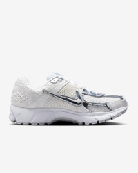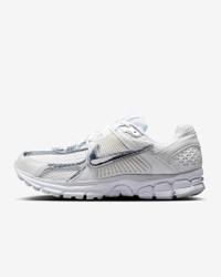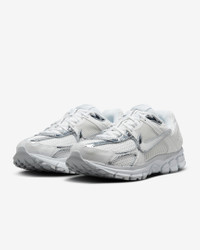Carve a new lane for yourself in the Zoom Vomero 5—your go-to for complexity, depth and easy styling. The richly layered design includes textiles, leather and gold accents that come together to make one of the coolest sneakers of the season. Benefits - Upper mixes real and synthetic leather for a layered look built to last. - Mesh panels and ventilation ports on the heel keep it light and breathable. - Snappy and responsive, Zoom Air cushioning helps provide a quick-off-the-ground sensation. - Plastic caging on the side creates a supportive feel. - Rubber outsole gives you durable traction. Product Details - Gold Swoosh logo - Reflective details - Not intended for use as Personal Protective Equipment (PPE) - Shown: White/Summit White/Pure Platinum/Metallic Silver - Style: HF7723-100