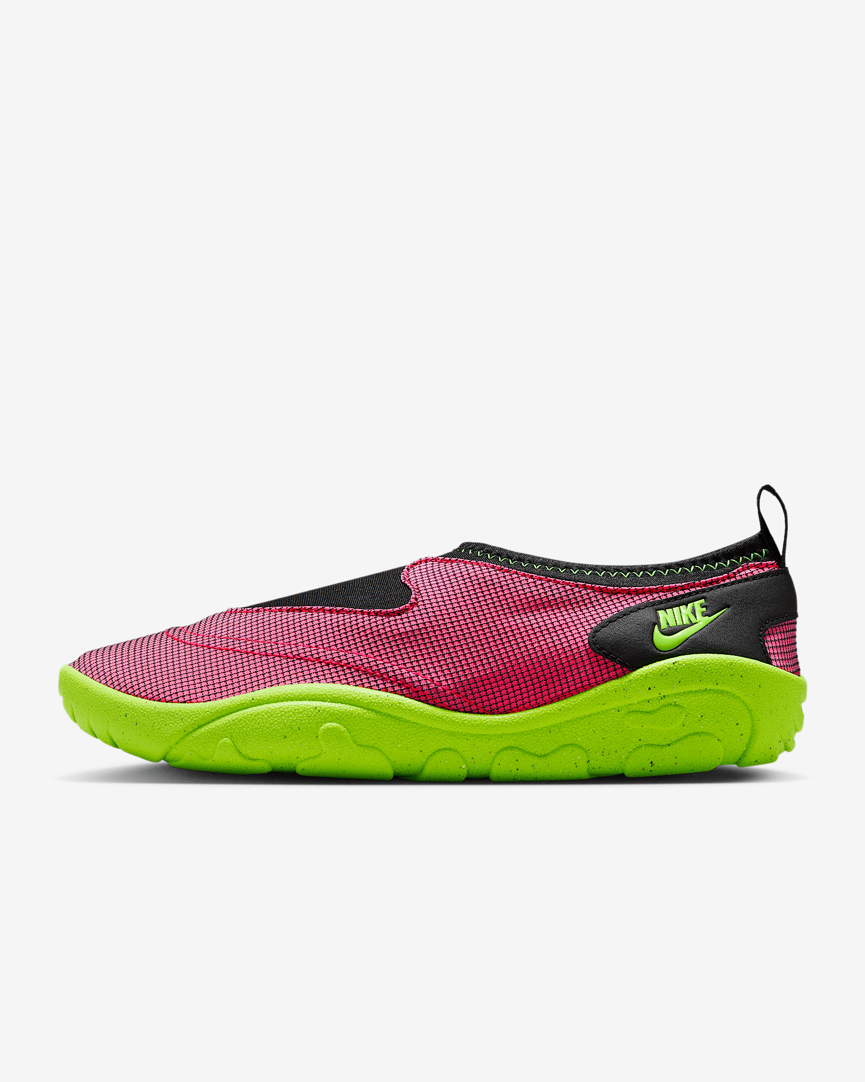 We reached into the archives and pulled out the low-profile, water-friendly Aqua Turf. The stretchy upper fits like a glove, giving you a barefoot feel while acting as a barrier. As for traction, it has a full rubber outsole for secure grip no matter the environment. Benefits - Stretchy upper hugs the foot to help minimize drag in water. - Neoprene-like collar allows for ease of entry and a sock-like fit. - Internal foam strobel provides just the right amount of cushioning. Product Details - Shown: Hyper Pink/Black/Electric Green/Electric Green - Style: FZ5628-601