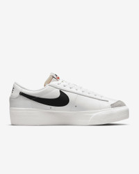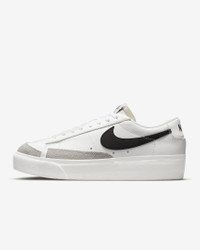 Praised for its classic simplicity and comfort, the Nike Blazer Low Platform elevates the hoops icon. The lifted midsole/outsole lets you step confidently while the upper keeps the proportions you loved from the original. Benefits - Elevated midsole with double-taped detailing offers a lifted stance for a confident and bold look. - Low-cut, padded collar creates a sleek look that feels great. - Exposed foam tongue adds plush, DIY style. - Vulcanized construction fuses the outsole to the midsole for a streamlined look and feel. - Solid rubber sole with herringbone pattern adds traction, durability, and heritage styling. Product Details - Shown: White/Sail/Team Orange/Black - Style: DJ0292-101 SIZE & FIT Fits large; we recommend ordering a half size down