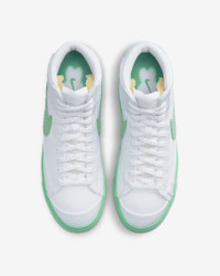 Let your style bloom with the warmer weather. The Nike Blazer Mid '77 started in basketball and over the decades became a staple for those who love the retro look and the premium feel. Bold green accents and an extra-soft Swoosh logo keep your look fresh and new. Benefits - Autoclave construction fuses outsole to midsole for streamlined style. - Exposed foam on tongue provides throwback look. - Non-marking, solid-rubber outsole with herringbone pattern provides excellent traction and durability. - Shown: White/Barely Green/Gum Light Brown/Spring Green - Style: FJ4547-100 SIZE & FIT For easier entry, we recommend unlacing the top 4 eyelets and sghtly loosening the laces farther down