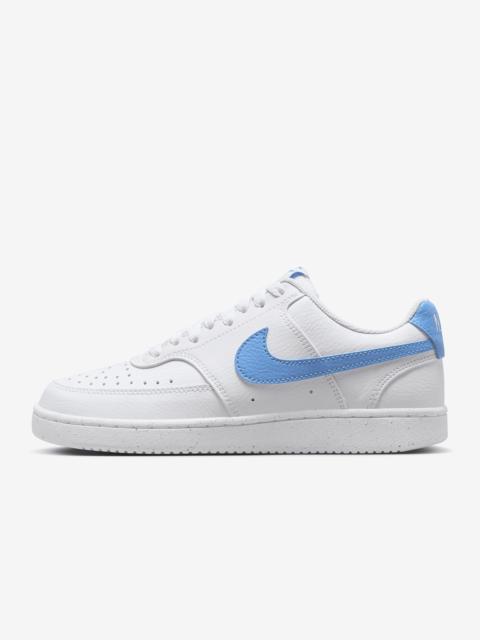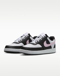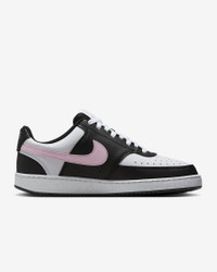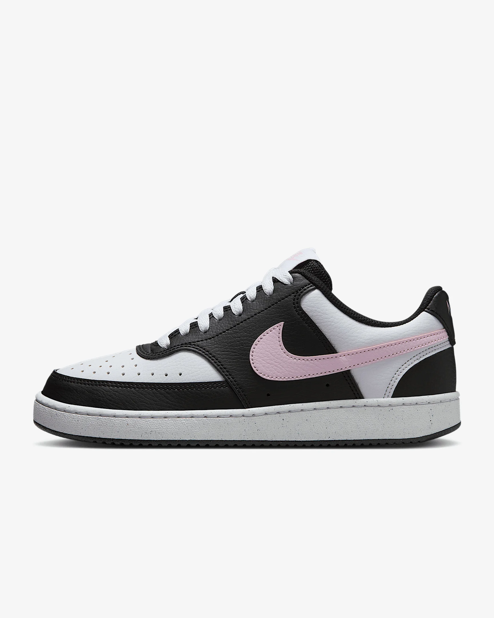 In love with the classic look of '80s basketball but have a thing for the fast-paced culture of today's game? Meet the Nike Court Vision Low Next Nature. Made from at least 20% recycled materials by weight, its crisp upper and stitched overlays are inspired by the days of hook-shots and tube socks. The padded collar and rubber outsole bring comfort and traction for your world. Benefits - Made with at least 20% recycled material by weight. - Whenever you see the Nike Sunburst or the name Next Nature (NN), you see one more step on our journey toward zero carbon and zero waste. - Using synthetic materials, the design features materials that echo mid-1980s basketball shoes. - Padded, low-cut collar looks sleek and feels great while the perforations on the toe and sides add comfort and breathability. - Vulcanized construction fuses the outsole to midsole for a streamlined look that's durable and comfortable. Product Details - Perforations on the toe and sides - Rubber outsole - Shown: Black/White/Pink Foam - Style: DH3158-008 SIZE & FIT Fits large; we recommend ordering a half size down
