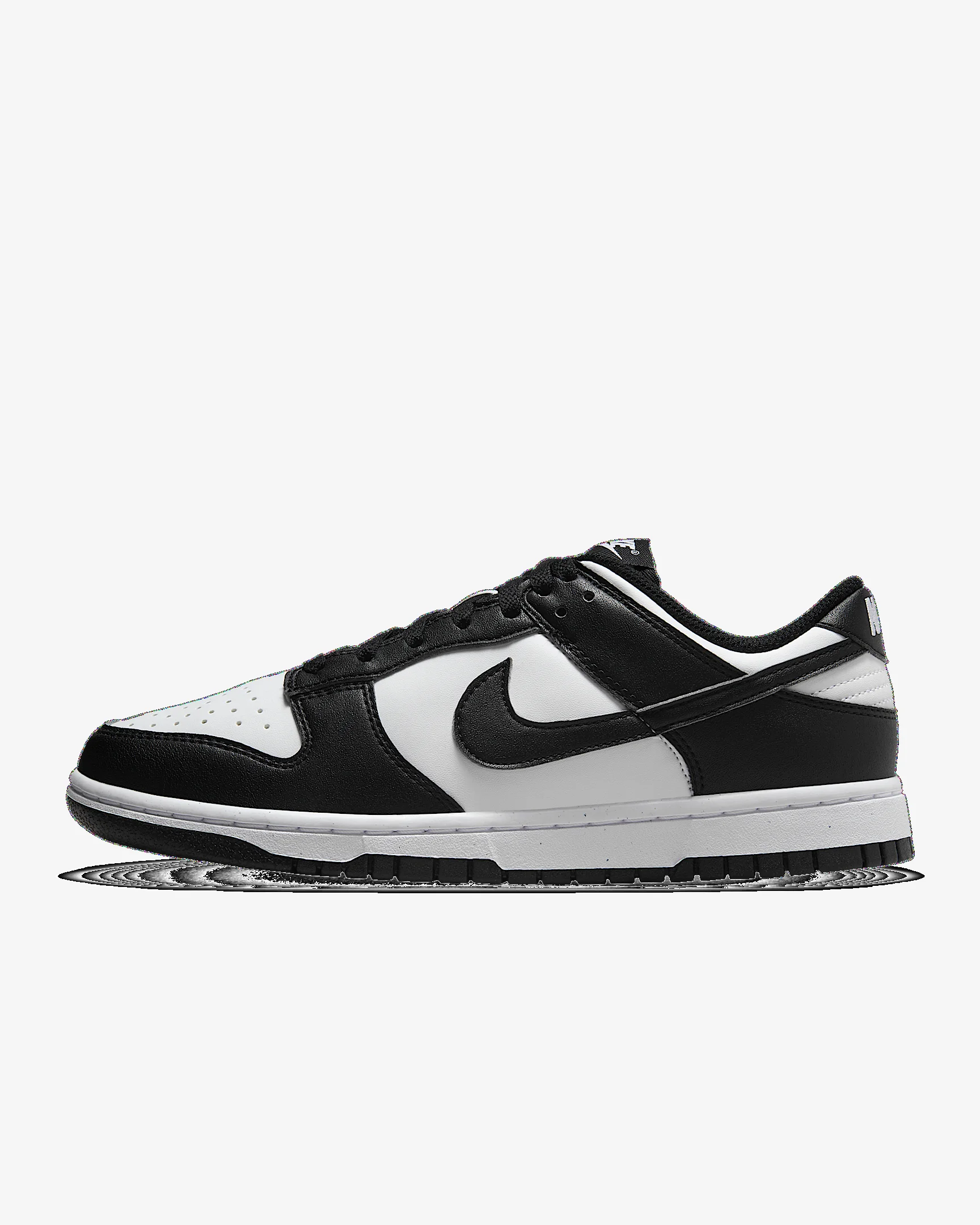 You can always count on a classic. The Dunk Low pairs its iconic color blocking with premium materials and plush padding for game-changing comfort that lasts. The styling possibilities are endless—how will you wear your Dunks? Benefits - Crisp leather upper has a slight sheen and ages to soft perfection. - Foam midsole offers lightweight, responsive cushioning. - Rubber outsole with classic pivot circle adds durable traction and heritage style. Product Details - Padded collar - Perforations on toe box - Shown: White/Black - Style: DD1873-115 SIZE & FIT Fits large; we recommend ordering a half size down