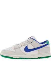 Dunk Low sneakers Highlights - White - Leather upper - Blue swoosh - Green sole Imported Composition Sole: Rubber 100% Lining: Fabric 100% Outer: Leather 100%