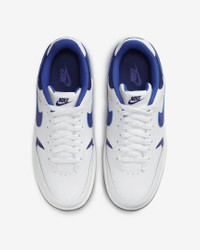 Layers upon layers of dimensional style—that's a force to be reckoned with. Offering both comfort and versatility, these kicks are rooted in heritage basketball culture. Collar materials pay homage to vintage sport while the subtle platform elevates your look, literally. The Gamma Force is forging its own legacy: court style that can be worn all day, wherever you go. Benefits - Leather, suede and mesh layers add a durable and dimensional look to any outfit. - Subtle platform lift gives you just enough height. - Speckled Nike Grind rubber outsole contains at least 5% recycled content. Product Details - Rubber midsole - Rubber outsole - Shown: White/Deep Royal Blue/Summit White/Game Royal - Style: DX9176-101 SIZE & FIT Fits large; we recommend ordering a half size down