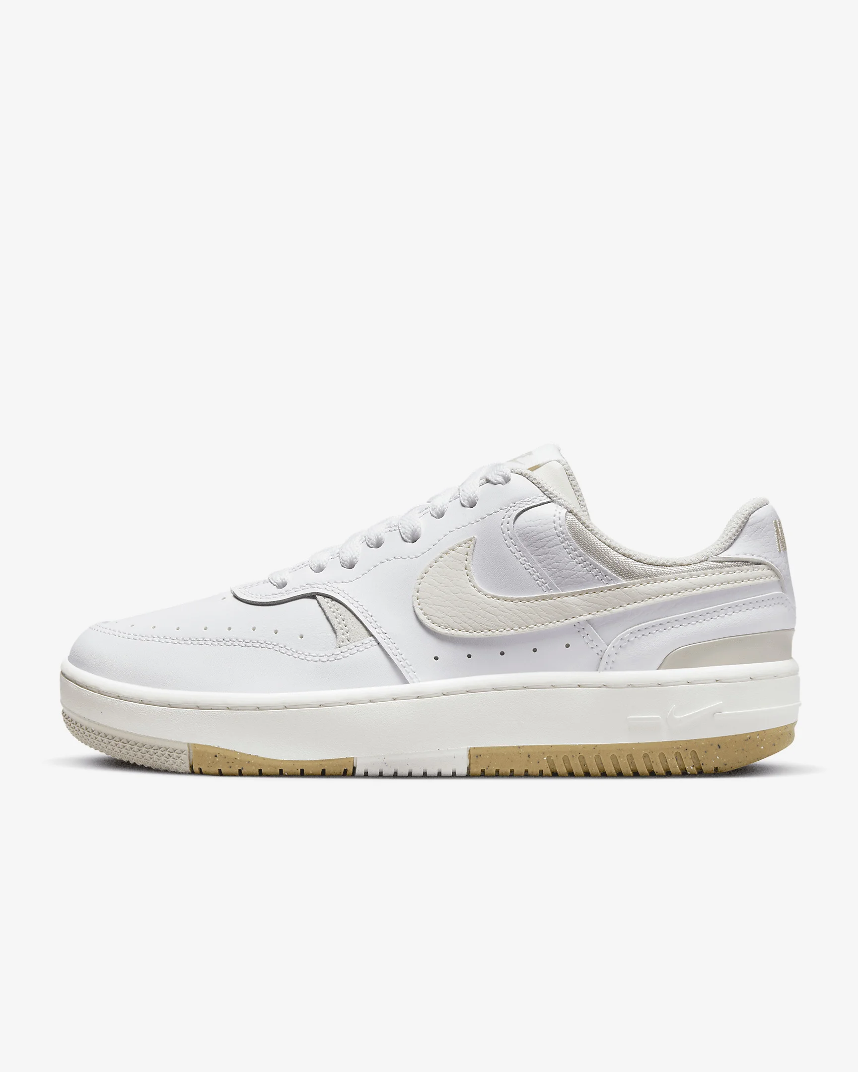 Layers upon layers of dimensional style—that's a force to be reckoned with. Offering both comfort and versatility, these kicks are rooted in heritage basketball culture. Collar materials pay homage to vintage sport while the subtle platform elevates your look, literally. The Gamma Force is forging its own legacy: court style that can be worn all day, wherever you go. Benefits - Leather, suede and mesh layers add a durable and dimensional look to any outfit. - Subtle platform lift gives you just enough height. - Speckled Nike Grind rubber outsole contains at least 5% recycled content. Product Details - Rubber midsole - Rubber outsole - Shown: White/Light Bone/Sanddrift/Phantom - Style: DX9176-103 SIZE & FIT Fits large; we recommend ordering a half size down