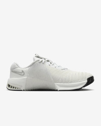 Whatever your "why" is for working out, the Metcon 9 makes it all worth it. We improved on the 8 with a larger Hyperlift plate and added a rubber rope wrap. More Benefits - Full rubber outsole provides durable traction for dynamic movements like cleans and walking lunges. - Breathable textile has a haptic print, which creates a 3-D effect that adds durability and texture, helping make it easier to keep your shoes clean. Also, it sports flexible, durable support in the toe area, so that when your toes splay when lifting heavy weights, it won’t feel restrictive. Product Details - Shown: Summit White/Sail/Black/Metallic Silver - Style: FQ7217-101