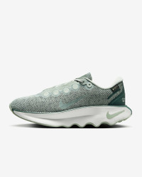 With a waterproof GORE-TEX upper and reflective details, this winterized Nike Motiva is made for wet-weather walks. It provides our highest level of cushioning with a tall foam stack and our Comfortgroove innovation on the outsole to absorb the bumps along the way. And with its exaggerated rocker, it helps propel you forward in ultimate comfort. Benefits - Wet-traction rubber pattern on outsole - Super-high cushioning - Moderate stability - Moderate flexibility Product Details - Reflective laces, overlay and midsole Swoosh logo - Soft foam collar - Widened forefoot, arch and toe box - Durable outsole pattern for traction - Not intended for use as Personal Protective Equipment (PPE) - Shown: Light Silver/Jade Horizon/Vintage Green/Light Silver - Style: HM0355-002 SIZE & FIT Fits small; we recommend ordering a half size up