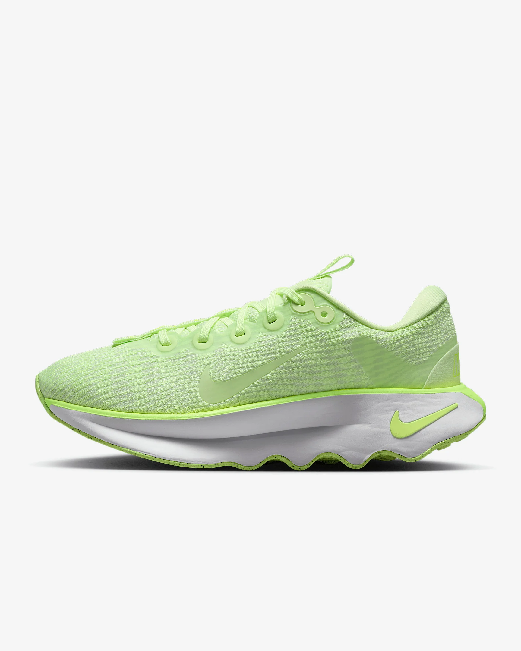 Designed for walking in ultimate comfort, the Nike Motiva provides our highest level of cushioning. A tall foam stack combines with our Comfortgroove innovation on the outsole to absorb the bumps along the way. And its exaggerated rocker helps propel you forward. Benefits - Super-high cushioning - Moderate stability - Moderate flexibility Product Details - Soft foam collar - Widened forefoot, arch and toe box - Durable outsole pattern for traction - Not intended for use as Personal Protective Equipment (PPE) - Shown: Barely Volt/Volt/White/Barely Volt - Style: DV1238-703 SIZE & FIT Fits small; we recommend ordering a half size up