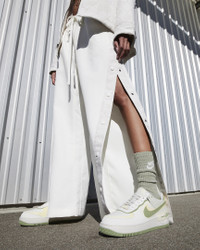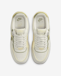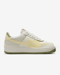 Everything you love about the AF1—but doubled! The Air Force 1 Shadow puts a playful twist on a classic basketball design. Layered materials brings depth, while an exaggerated midsole and double the branding give these sneakers a fresh look with 2 times the style. Benefits - Leather upper with stitched overlays is comfortable and durable. - Originally designed for performance hoops, Nike Air cushioning delivers lasting comfort. - Rubber outsole with heritage hoops pivot circles provides great traction. - Low-cut, padded collar looks sleek and feels great. Product Details - Shown: Sail/Alabaster/Pale Ivory/Oil Green - Style: FN6335-101