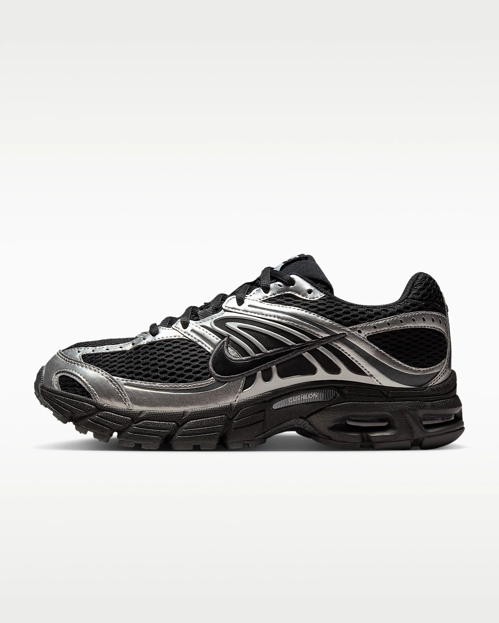 Familiar yet fresh, the Air Max Moto 2K is ready to go for a ride. Metallic accents compliment performance-inspired details and Max Air cushioning. Benefits - Upper mixes synthetic leather and textile for a layered look built to last. - Plush and comfortable, Max Air cushioning has just the right amount of support. - Rubber outsole provides durable traction. Product Details - Shown: Black/Metallic Silver/Anthracite/Black - Style: HQ2056-007