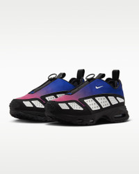Ahead of its time in '99, the innovative Air Max SNDR is back and louder than ever. From the secure fit around the heel to the zip-up shroud, this legendary sneaker continues to break the mold. Unzip the shroud to reveal "6453," a nod to the last 4 numbers of Nike's office numbers around the world, which spell out N-I-K-E on the keypad. Benefits - Neoprene-like upper feels smooth and stretchy. - Zip-up shroud covers your laces for a sleek look. - Reflective vented panels create a breathable feel. - Max Air cushioning in heel and forefoot add exceptional bounce and comfort. Product Details - Pull tabs - Foam midsole - Rubber outsole - Not intended for use as Personal Protective Equipment (PPE) - Shown: Deep Night/Cactus Flower/White/White - Style: HJ8080-501
