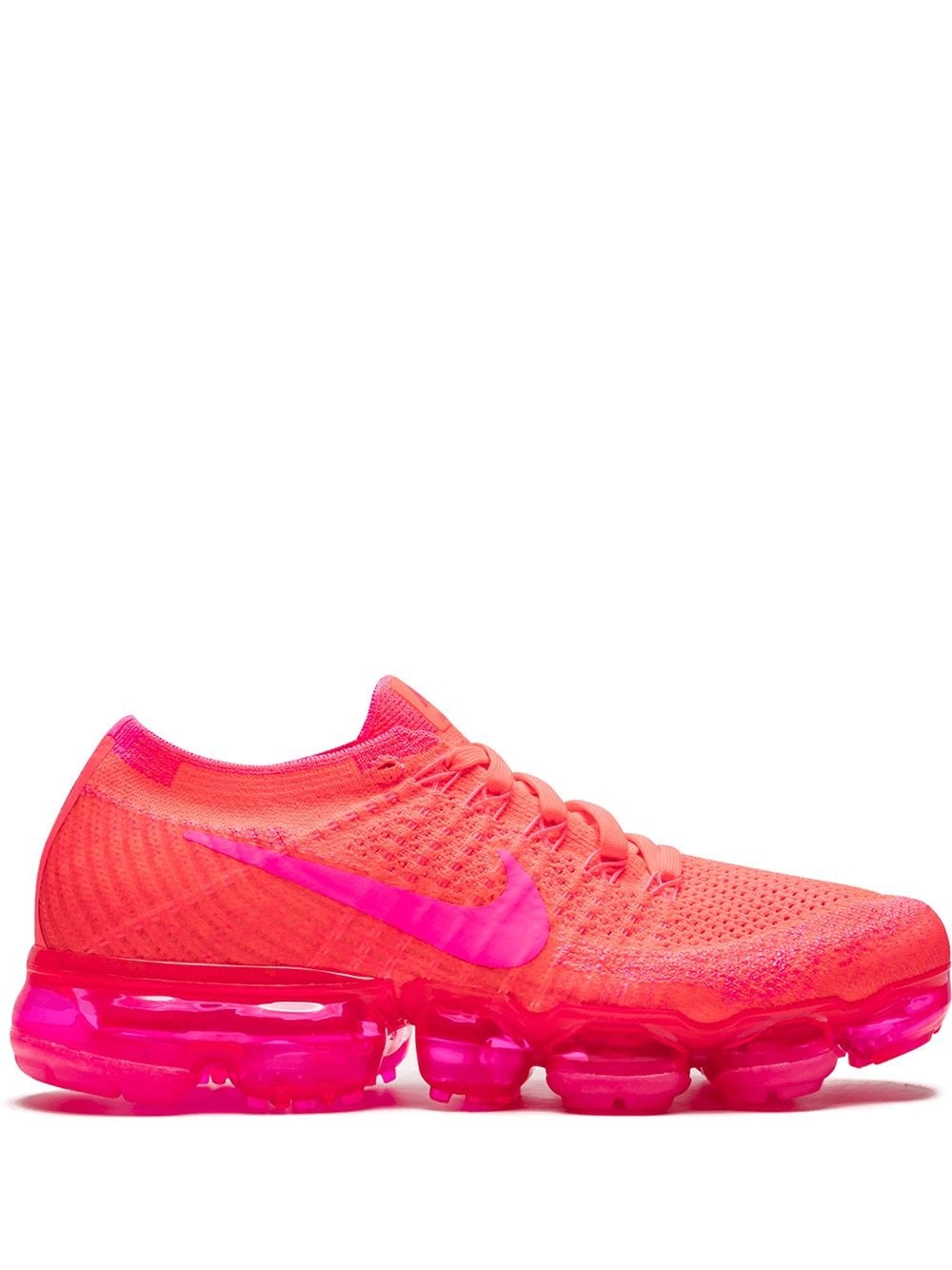 Air Vapormax Flyknit "Hyper Punch" sneakers Opt for Flyknit for your comfort. These Hyper Punch and Pink Blast Nike Air Max Vapormax Flyknit sneakers from Nike are just what you need. Place your feet atop ridged rubber pods for comfort, with a lace-up fastening for ease. Get up and go. Featuring an almond toe, a ridged rubber sole, a lace fastening, a signature Nike swoosh, a pull tab at the rear and a branded insole. Imported Composition Outer: Nylon 100% Lining: Polyester 100% Sole: Rubber 100%