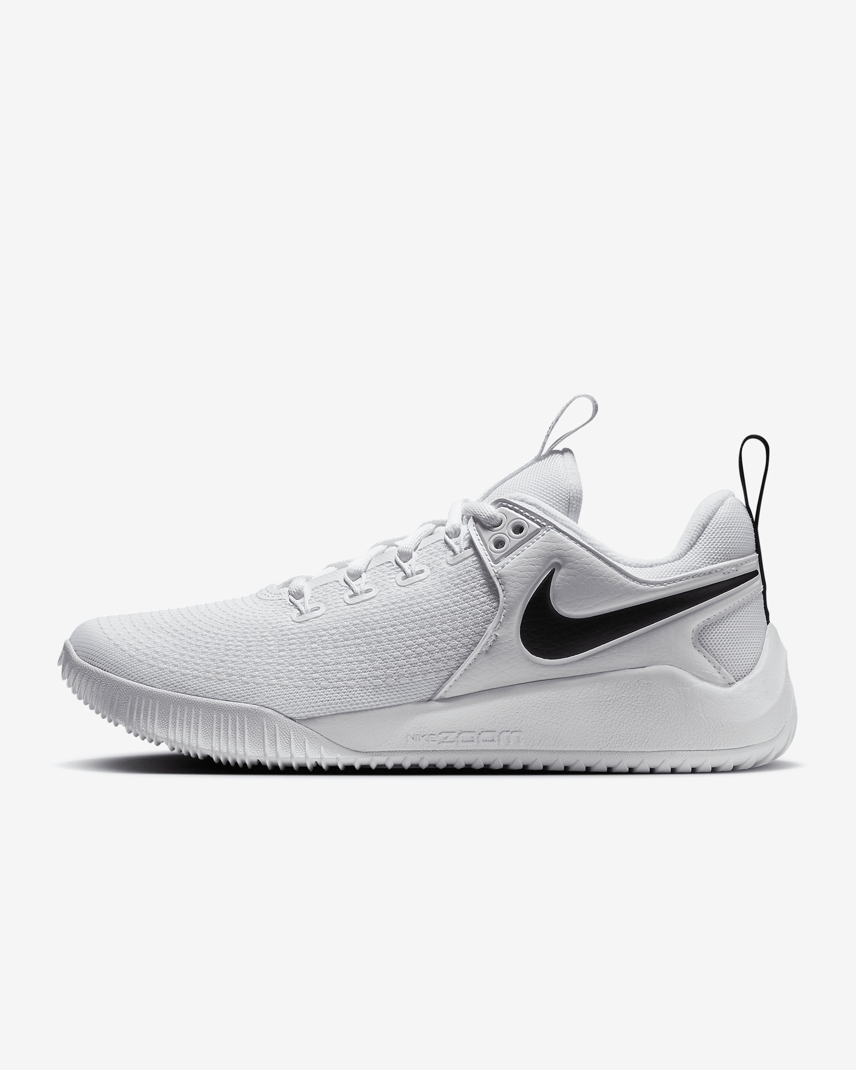 Designed for action on hard courts, the Nike Zoom HyperAce 2 Women's Volleyball Shoe helps keep you light and fast on your feet with a breathable upper and responsive cushioning. Benefits - Textile and synthetic construction for breathable comfort - Heel cage enhances support and stability - Foam midsole with Nike Zoom Air cushioning for lightweight responsiveness - Durable rubber tread delivers excellent traction - Shown: White/Black - Style: AA0286-100 SIZE & FIT Fits small; we recommend ordering a half size up