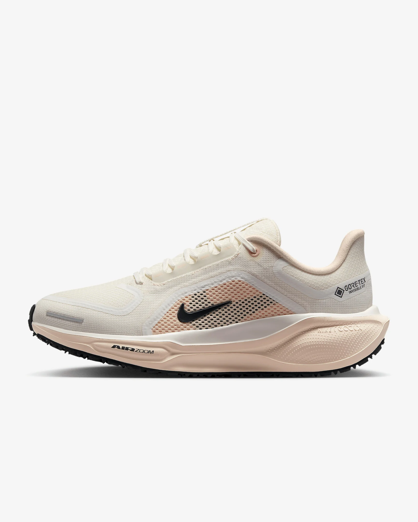 Responsive cushioning in the winterized Pegasus provides an energized ride for wet-weather road running. Experience lighter-weight energy return with dual Air Zoom units and a ReactX foam midsole. Plus, a waterproof GORE-TEX upper and reflective details throughout help you comfortably take on the elements. Benefits - Waterproof GORE-TEX upper and technical mesh help keep water out so your feet dry. - ReactX foam midsole surrounds forefoot and heel Air Zoom units for an energized ride. - Storm-Tread outsole provides traction in wet weather. - Heathered material around the collar helps keep your ankle warm. - What's new? All-new ReactX foam midsole is 13% more responsive than previous React technology. - Crafted for performance and planet, ReactX foam is engineered to reduce its carbon footprint by at least 43% in a pair of midsoles due to reduced manufacturing process energy compared to prior React foam. The carbon footprint of ReactX is based on cradle-to-gate assessment reviewed by PRe Sustainability B.V and Intertek China. Other midsole components such as airbags, plates or other foam formulations were not considered. Product Details - Reflective GORE-TEX logo and Swoosh logo - Reflective graphics and overlays - Not intended for use as Personal Protective Equipment (PPE) - Weight: Approx. 251 g/8.8 oz (Women's US 8) - Heel-to-toe drop: 10 mm - MR-10 Last - Our best, most consistent fit (same as Pegasus 40) - Plush collar, tongue and sockliner - Shown: Sail/Guava Ice/Crimson Tint/Anthracite - Style: FQ1357-100
