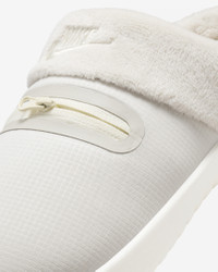 There's nothing like cozying up to a campfire. Nothing like adventure. But also, there's nothing like the comfort of home. The Nike Burrow lets you bridge worlds. Slip them on and get lounging or step out of the tent and enjoy the fresh mountain air. Its fleece-like lining helps keep you warm. The marshmallow soft foam midsole/outsole with grippy traction pattern adds spring to your step. Benefits - Foam midsole/outsole adds lasting comfort. - Fleece-like material lines the inside (and sockliner) for added warmth and comfort. - Zipper pocket on the top lets you stash small items like keys or cash and makes a playful nod to Nike Tech Fleece. - Outsole traction pattern helps on a variety of surfaces. Product Details - Embroidered details - Shown: Light Bone/Sail/Light Iron Ore/Coconut Milk - Style: DJ3131-002