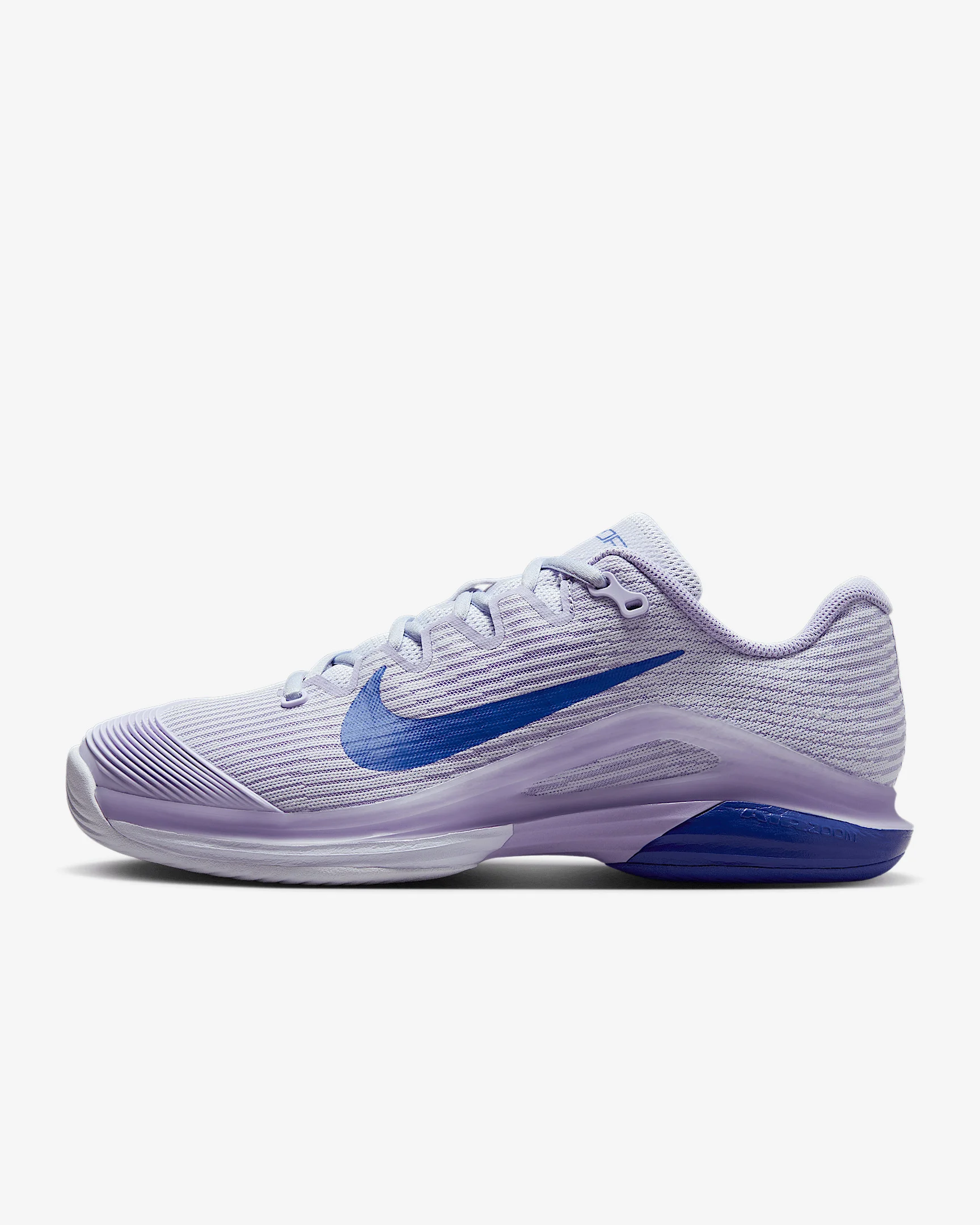 Get to every single ball with blistering speed in the Vapor 12. With a reworked upper and traction pattern, it's lighter and more responsive than the 11. And we brought back Air Zoom cushioning, so you can always be on the attack. More Benefits - Full midfoot fit band allows you to pull the laces tighter to enhance the fit and enable faster cuts. - Midsole foam in between the plastic and rubber, which wasn’t on the Vapor 11, helps keep you light on your feet. Product Details - Designed for wear on hard court surfaces - Cushioned insole - Shown: Amethyst Tint/Hydrangeas/Deep Night - Style: FV5554-500
